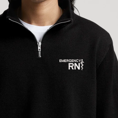 Stay warm and stylish with our Emergency RN embroidered quarter zip. Show off your passion for healthcare in this sleek black design.